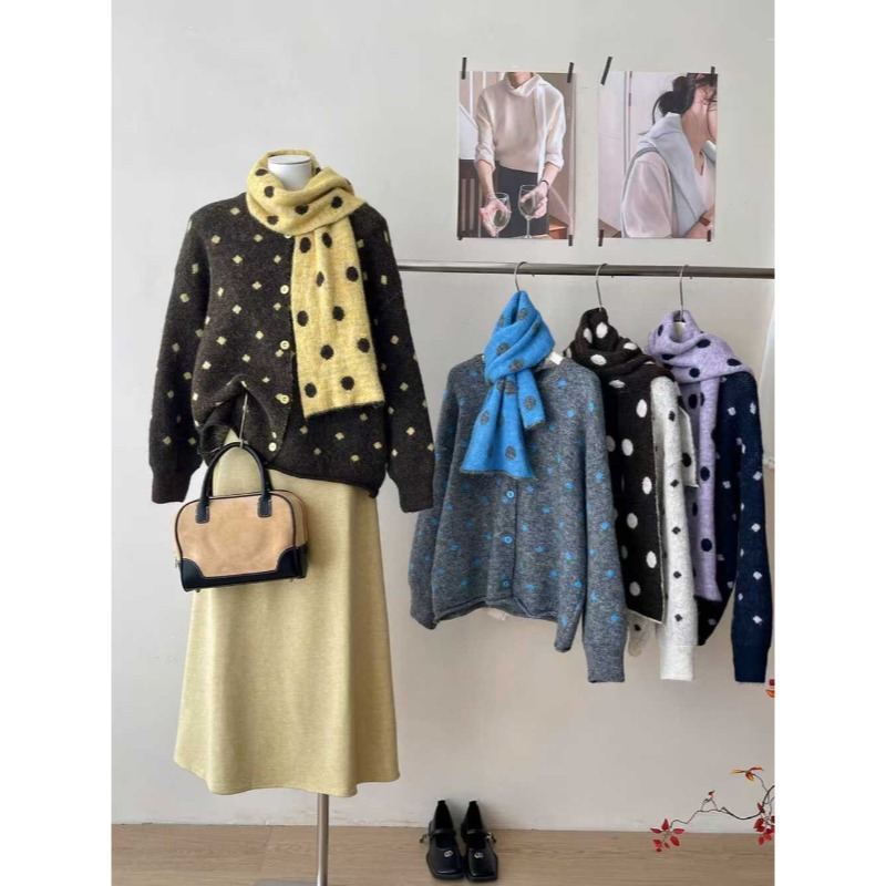 超貼心設計!淨色波點軟糯毛衣自帶同款圍巾🧣,不用煩惱搭配!