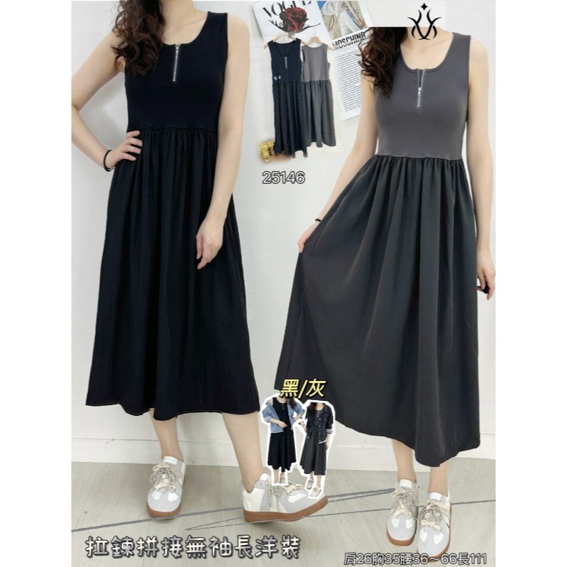 想要舒適又有型? 這件「拉鍊拼接無袖長洋裝」給你極致庸懶感