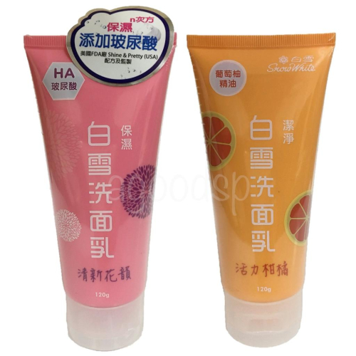 <品名> 白雪洗面乳 <淨重> 120g <規格> 清新花韻-保濕 活力柑橘-潔淨 <產地> 台灣 <保存期限> 四年