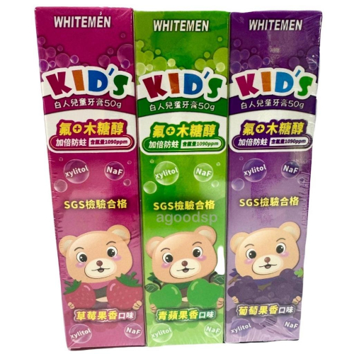 白人兒童牙膏3入組 (草莓蘋果葡萄口味) 台灣製造 蝦皮代開發票