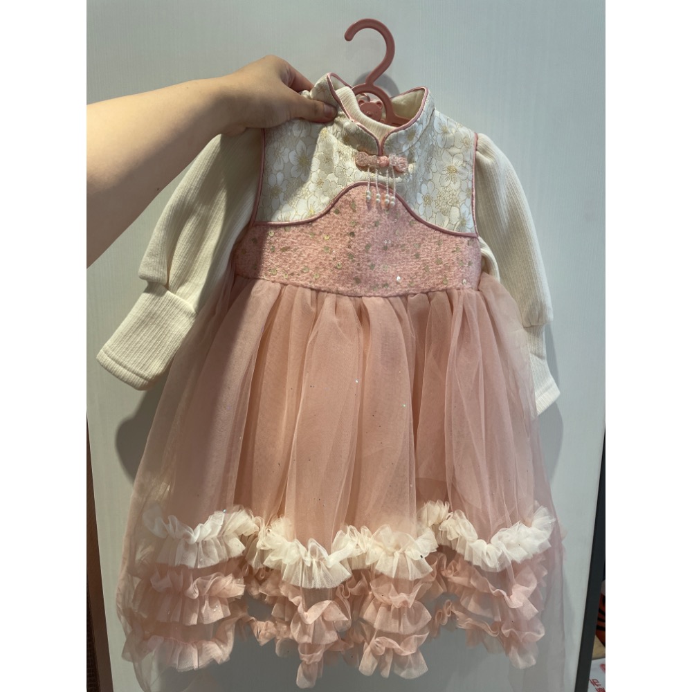 搭配金粉櫻花洋裝粉紅蓬蓬裙子