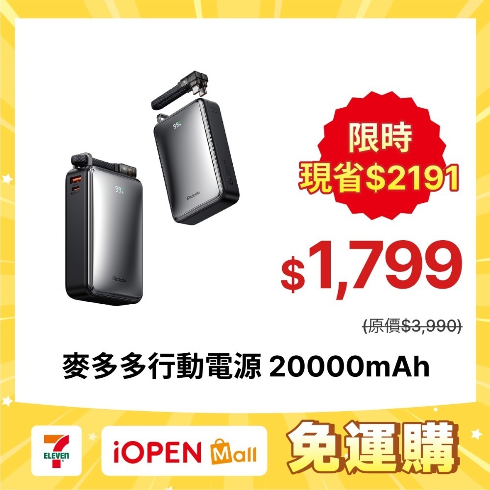 體積小+大容量 20000mAh行動電源