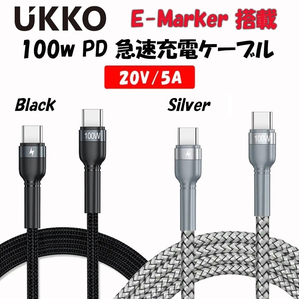 UKKO 急速 PD 100W Type-C to Type-C 充電編織傳輸線 1m(20V/5A E-marker)
