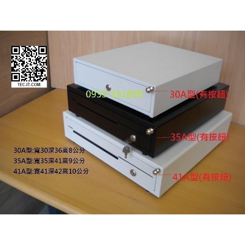 35型錢箱.寬35深41高11公分毛重達5.2公斤 K35型:只要用手觸踫抽屜頭即可開啟.同時附有鈴聲(也可取消鈴聲) A35型:以按鈕開啓.同時附有鈴聲(也可取消鈴聲) D35型:附RJ11(電話線頭)可接出單機使用.不附鈴聲. T35型:以手轉動鑰匙開啓.不附鈴聲(此型較適合使用不頻繁的商家) 本公司是錢箱專業廠.出廠的錢箱都有貼標纖電話.有售後服務. 甚至別處買的他廠錢箱.我們也有能力維修