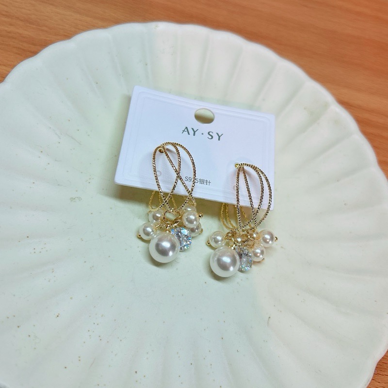 925銀針小眾耳環 珍珠帶鑽精緻c圈耳環