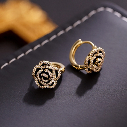 925銀針小眾耳環 三茶花微鑲精緻耳扣