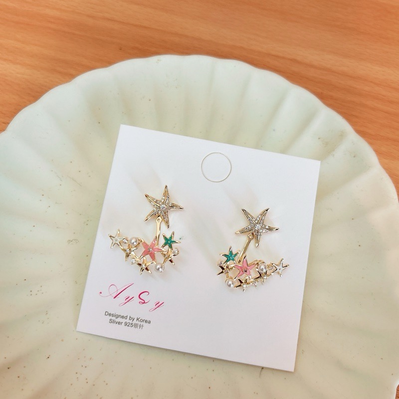 925銀針小眾耳環 前後兩戴海星五角星耳環