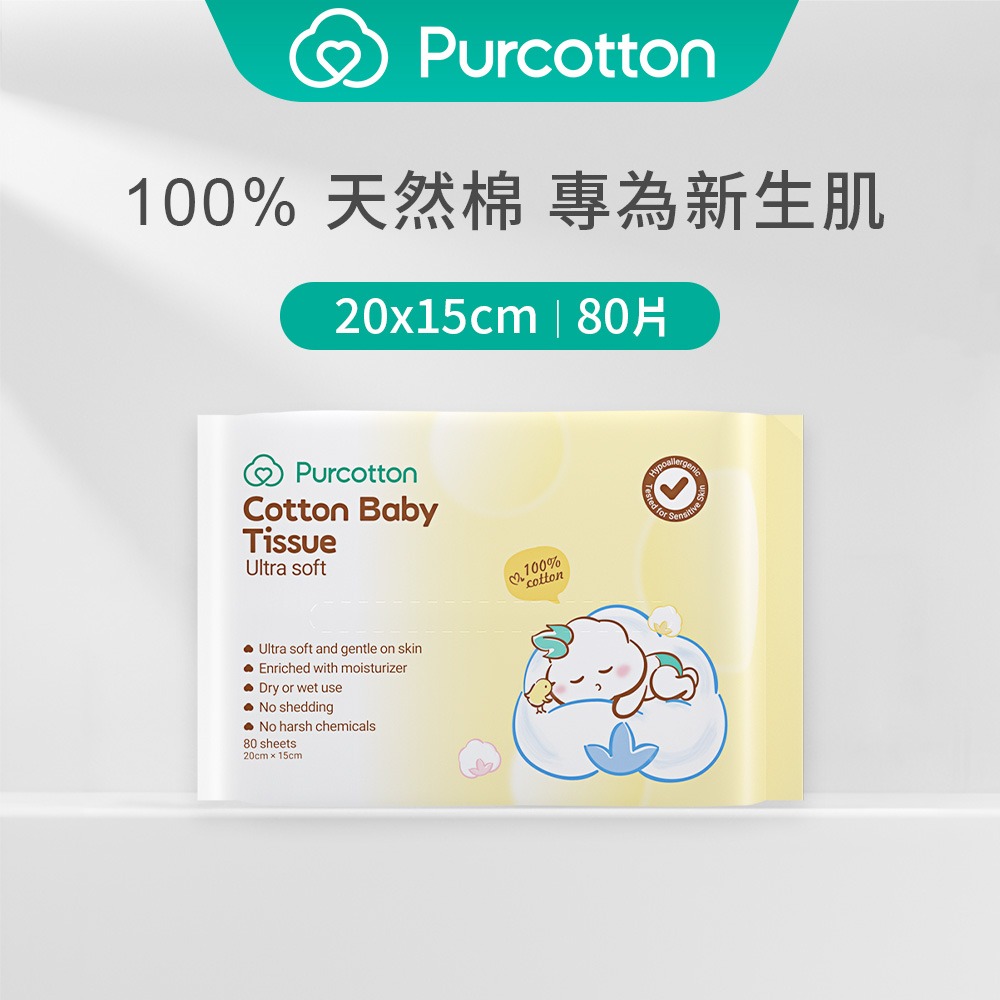 全棉時代 100%純棉嬰兒超柔乾濕兩用巾 80片加厚 (15*20公分)三包入