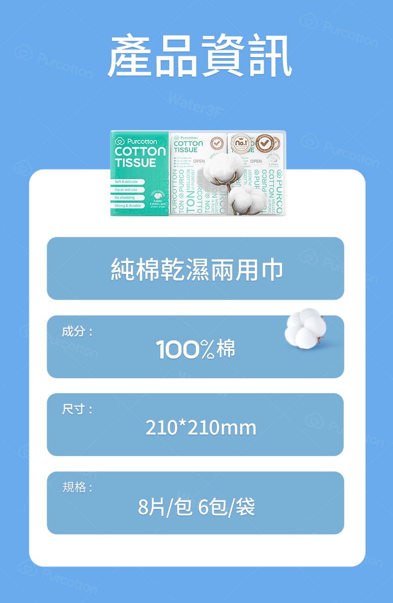 全棉時代 100%純棉乾濕兩用巾 8片 旅行包 (21*21公分) 六包入