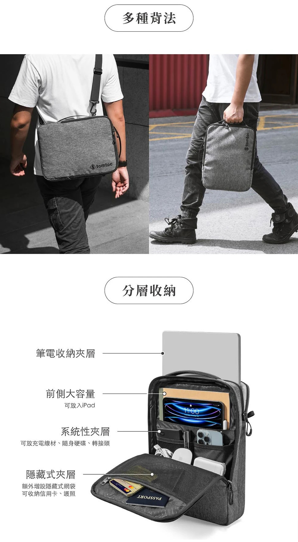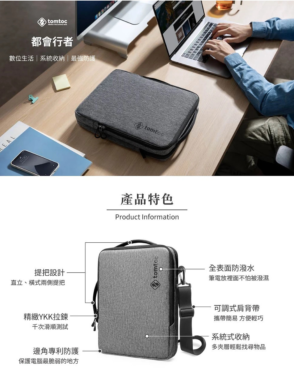 【麻新嚴選】Tomtoc 都會行者手提斜肩包 ,灰