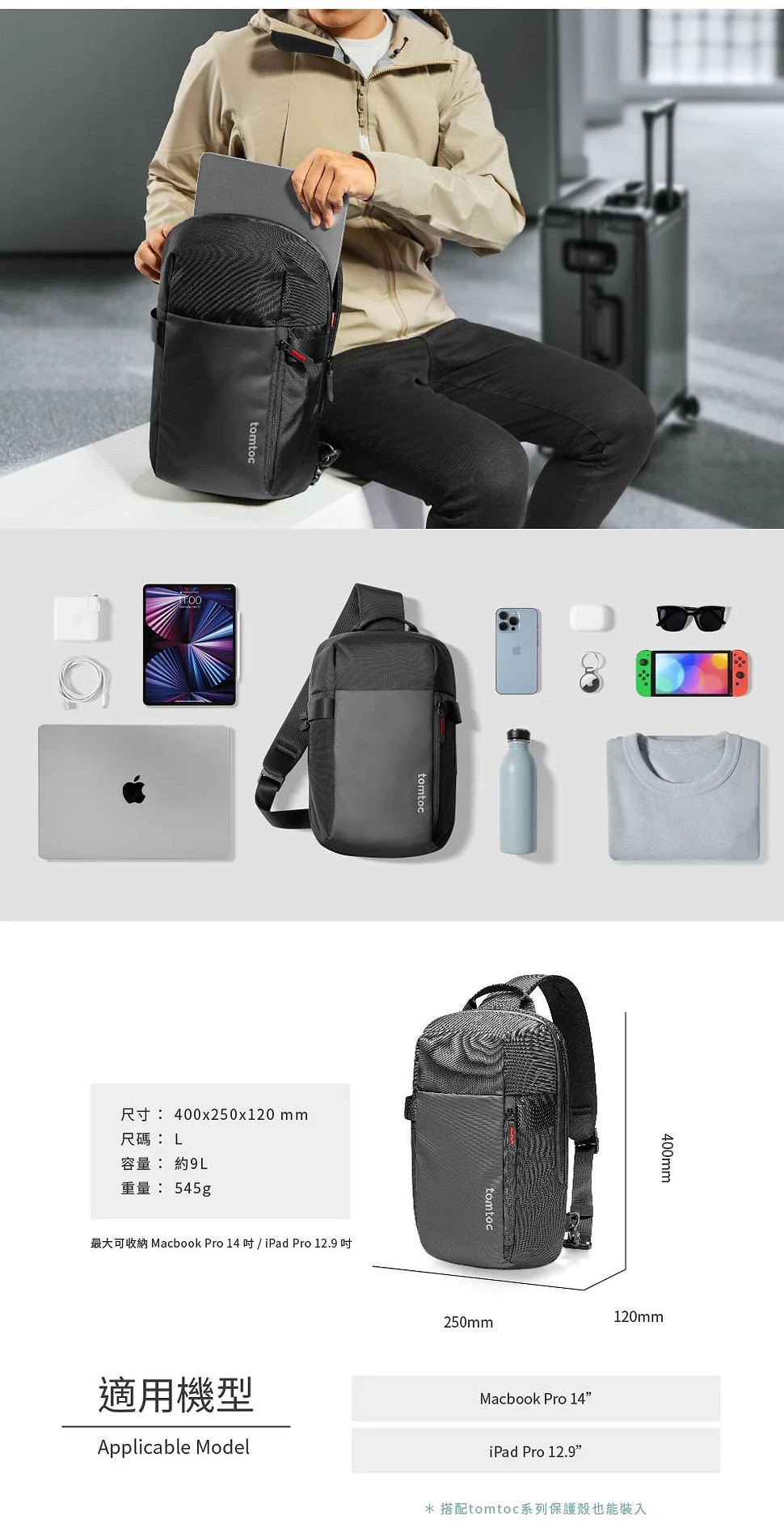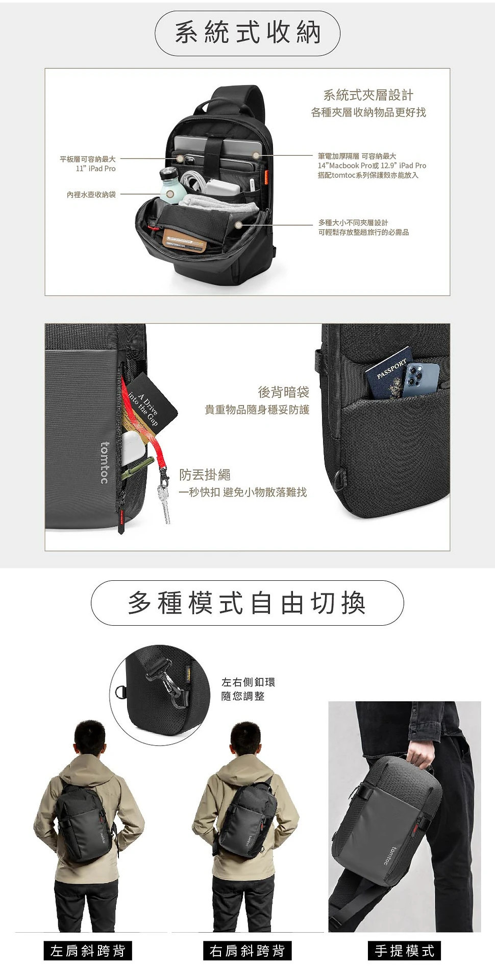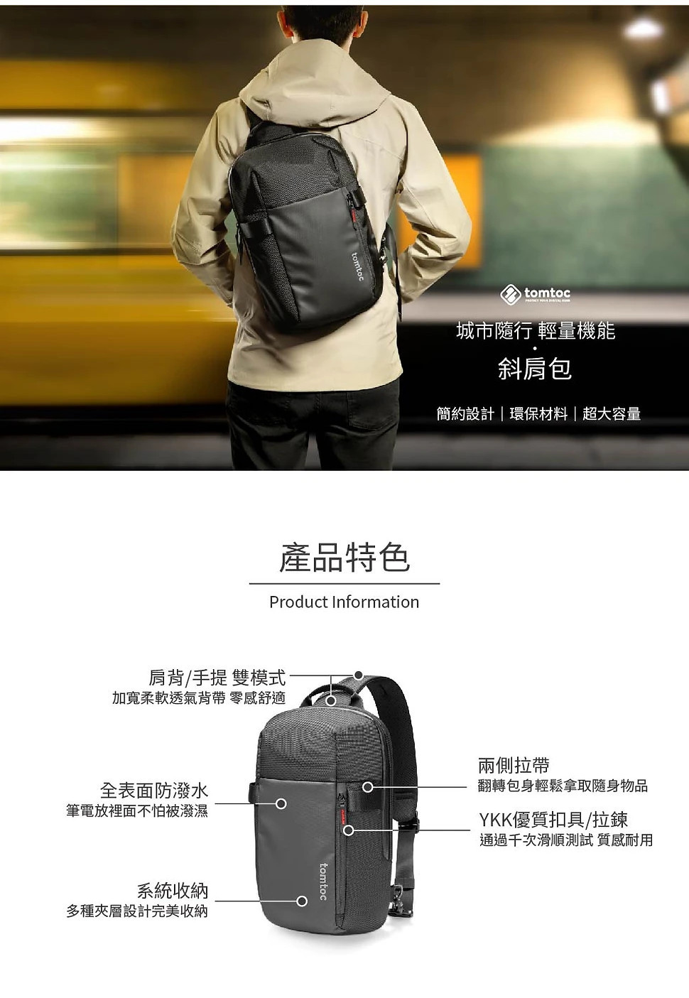 【麻新嚴選】Tomtoc 城市隨行 • 輕量機能 斜肩包黑