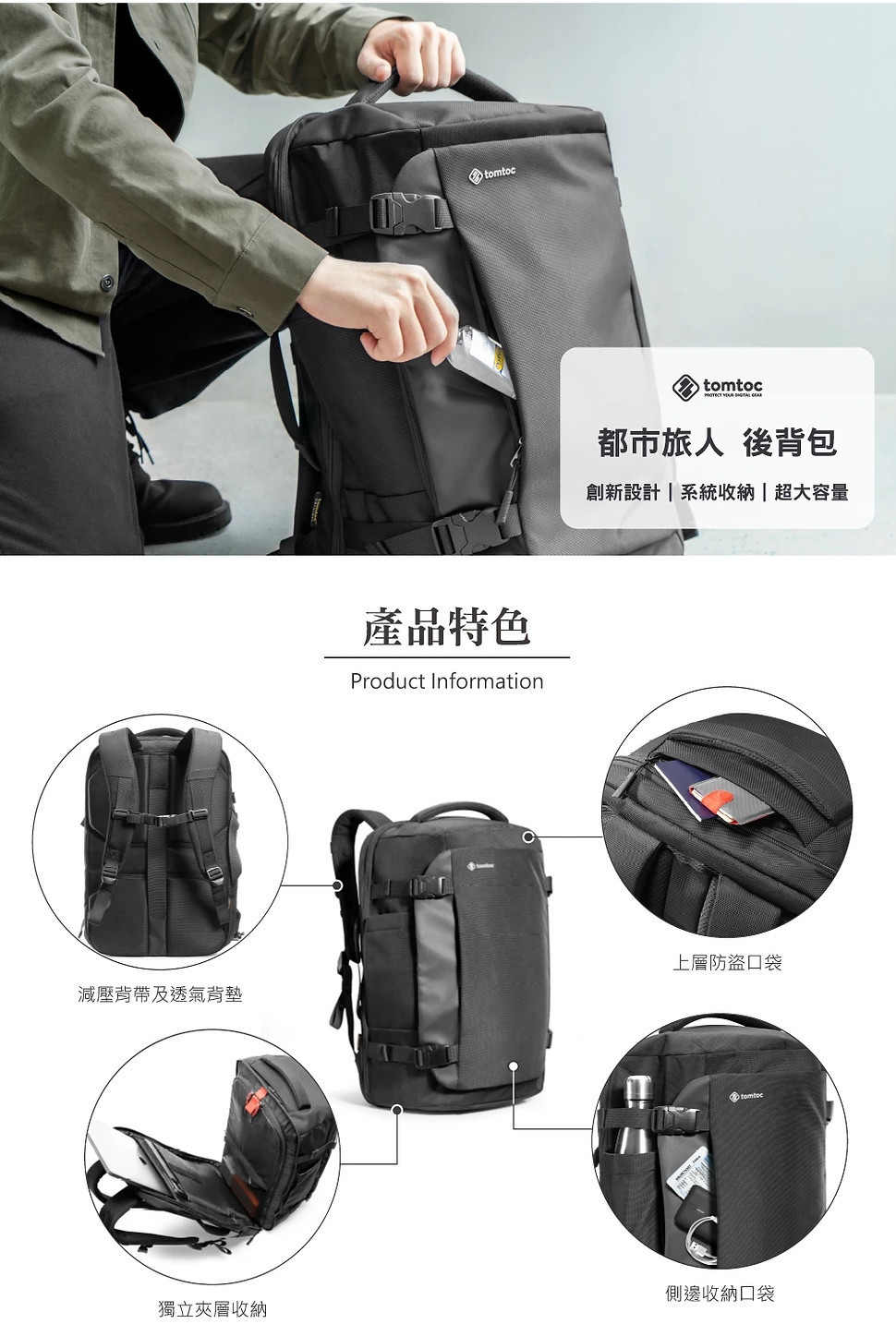 【麻新嚴選】Tomtoc 城市旅人後背包,黑