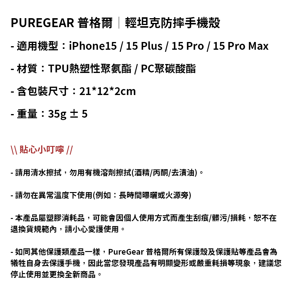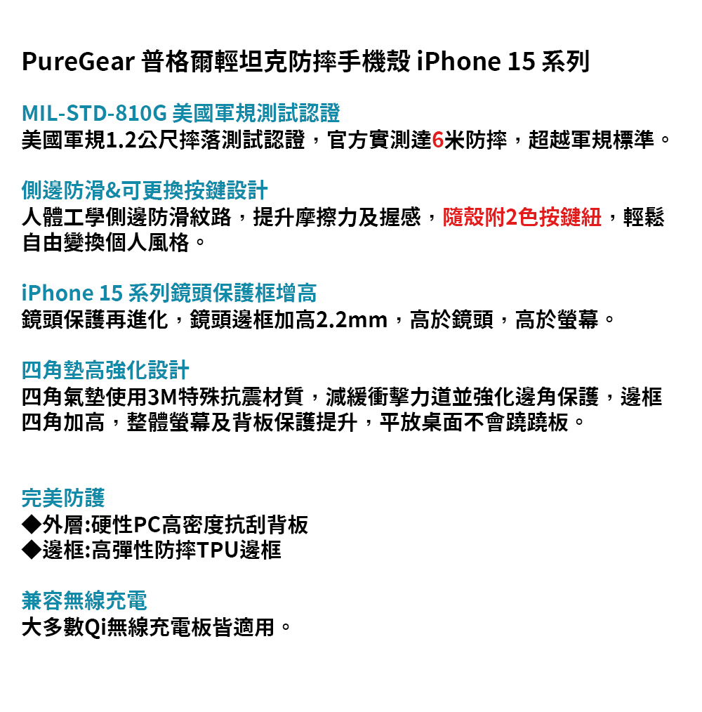 【PureGear普格爾】 iPhone 15 坦克透明防摔手機殼 全新未拆封