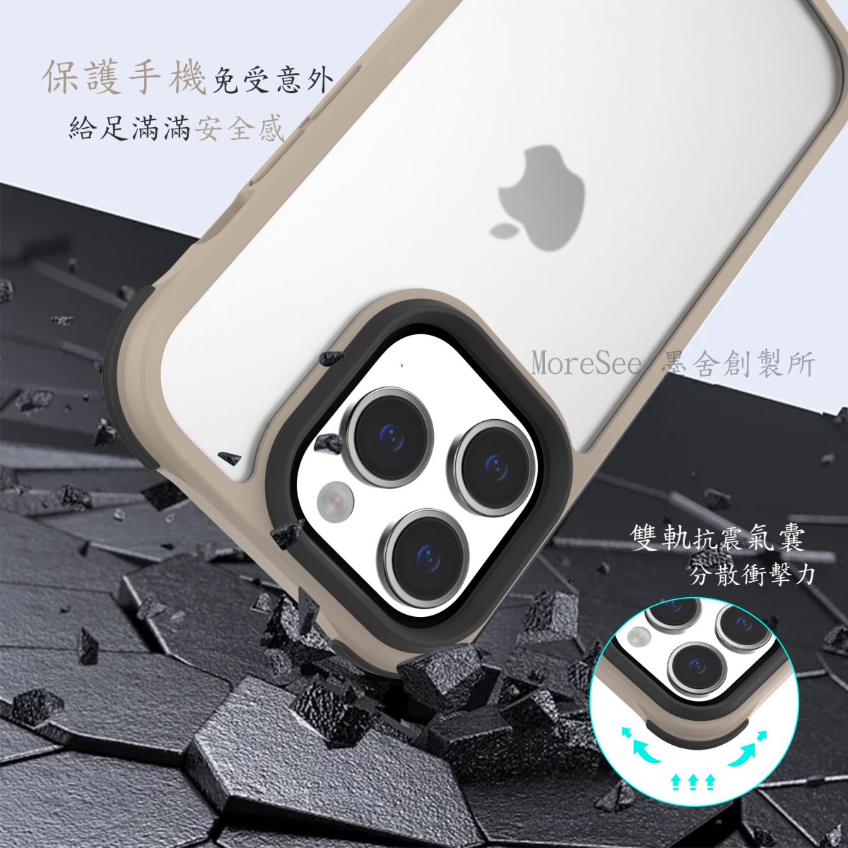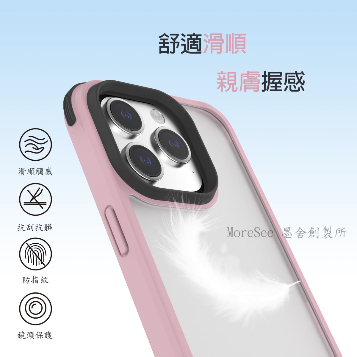 【MoreSee墨舍創制所】墨藍迪 透明磨砂抗震防摔手機殼 iPhone15 pro 適用