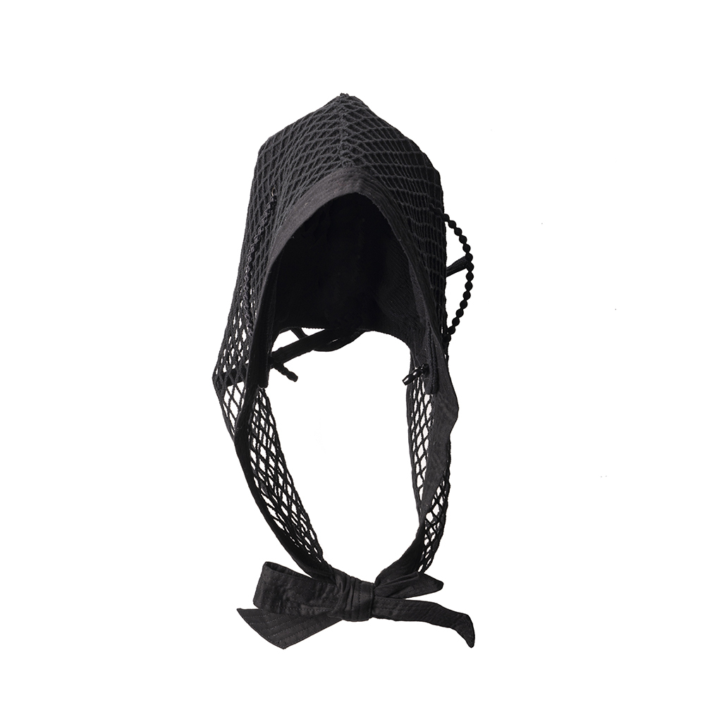 中世紀的Coif布帽,抑或是現代被轉化為嬰兒用的綁帶軟帽Bonnet為原型,我們將其調整為男女皆適合,且更帶神秘感的款式。