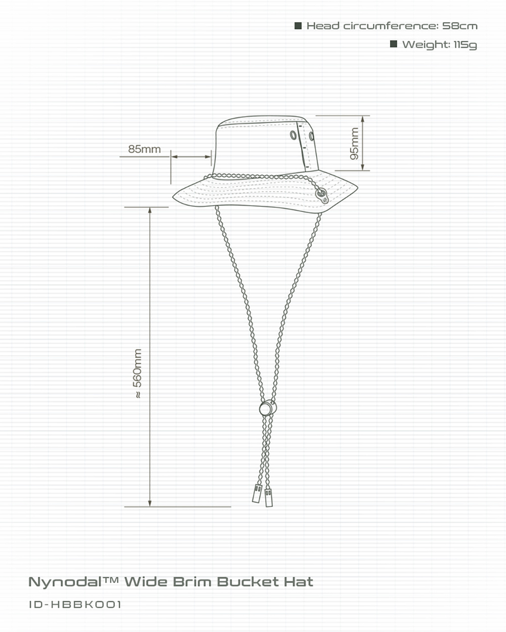 以經典的寬帽沿漁夫帽板型為基礎,加上獨家開發Nynodal™珠繩做為調節,其本身的重量讓帽沿產生獨特的輪廓。