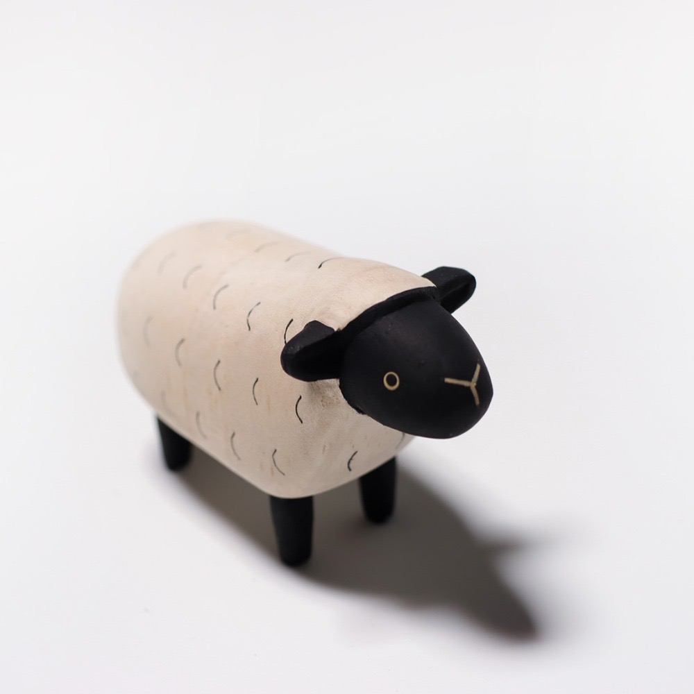 現貨新品 日本手工雕刻超可愛木頭小動物 綿羊