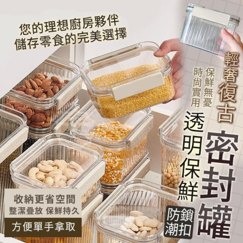 輕奢復古防潮鎖扣透明保鮮密封罐 保鮮盒 密封盒