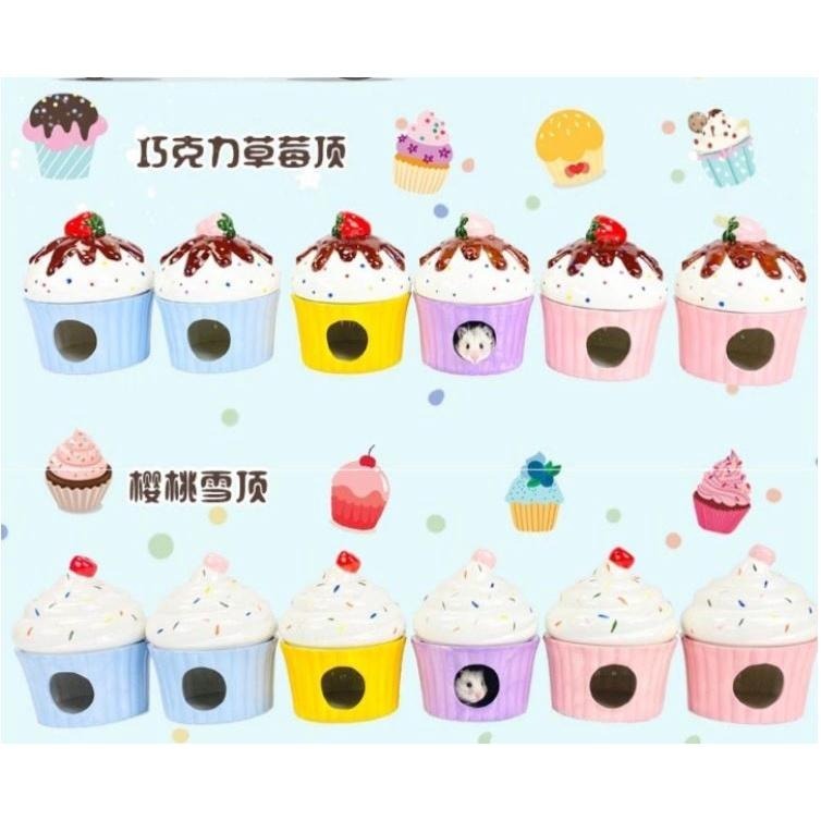 刺星球 冰淇淋蛋糕陶瓷窩 巧克力草莓頂 可愛倉鼠窩 倉鼠小屋 倉鼠陶瓷窩