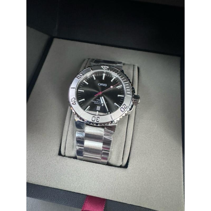 Oris 時間之海 灰面 鋼錶帶 機械錶 背後鏤空設計 🔥