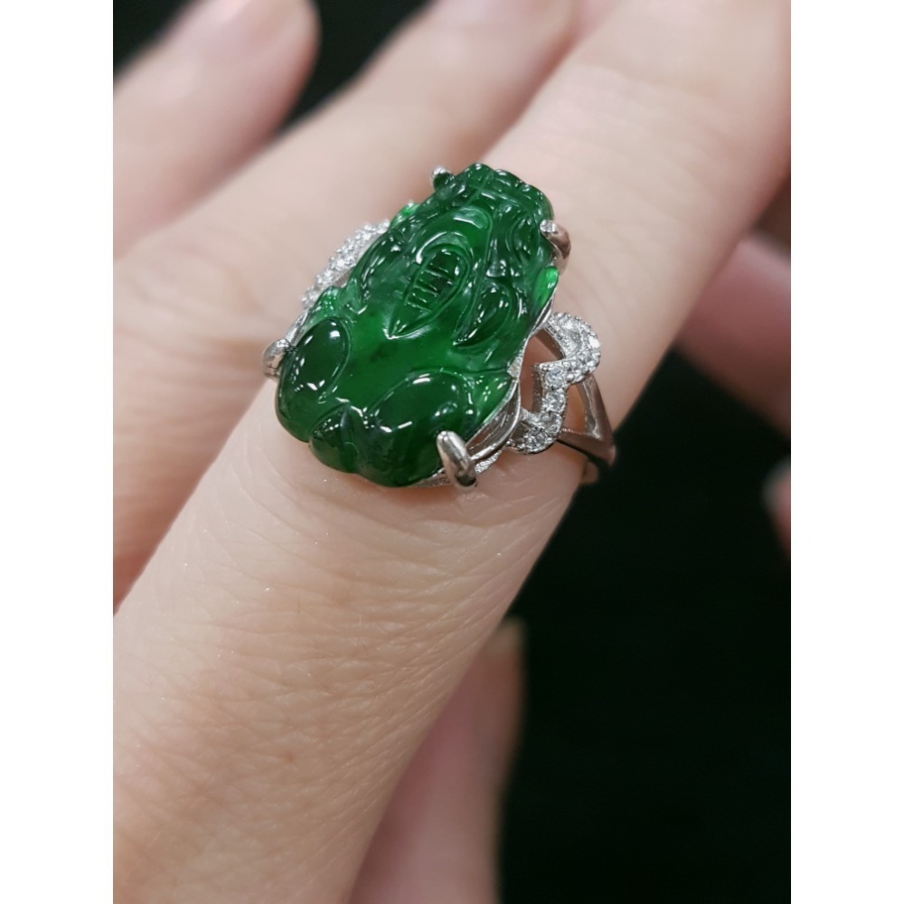 天然緬甸玉A貨翡翠 瓜料藍水 貔貅 玉戒 戒指
