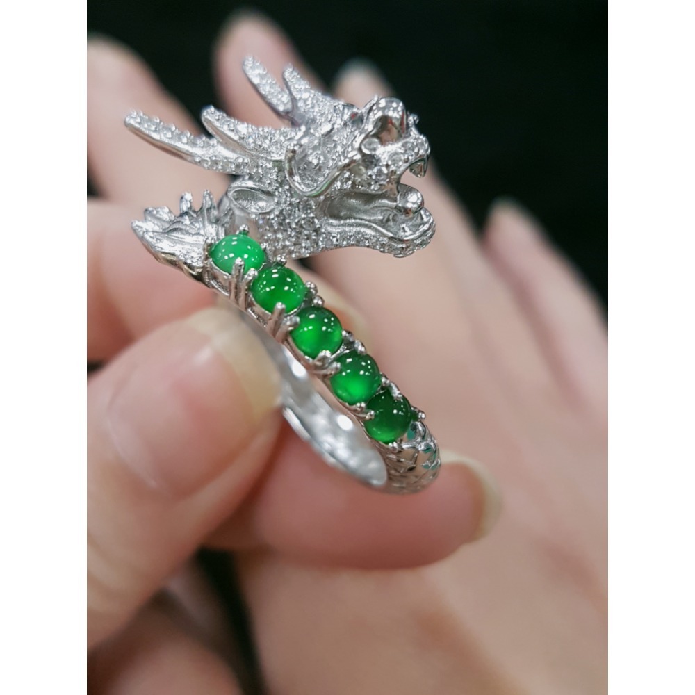 天然緬甸玉A貨翡翠 龍戒 攏來戒指 戒子 玉戒 925銀鋯石#蛋面戒指