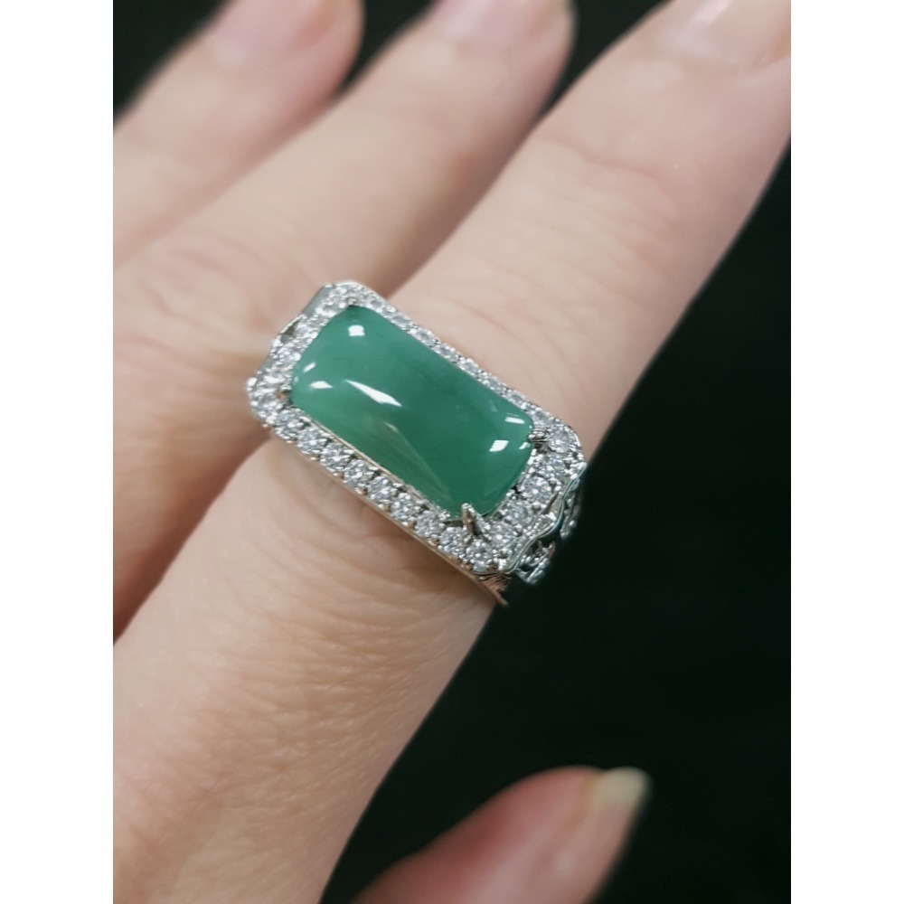 天然緬甸玉A貨翡翠花青方戒 馬鞍戒 戒指 戒子 玉戒