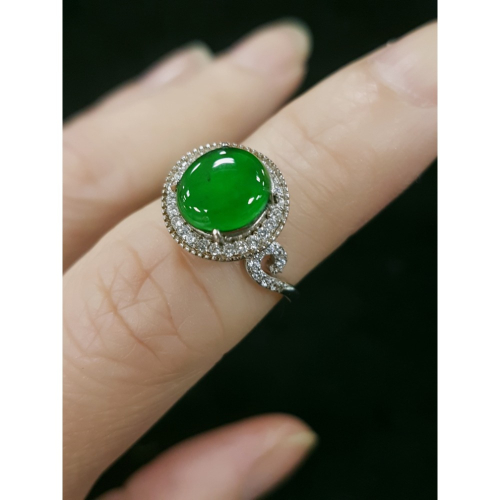 天然緬甸玉A貨 瓜料 翡翠 戒指 戒子 玉戒 925銀鋯石