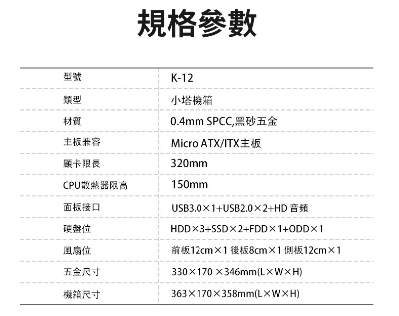 前板可裝12CM風扇(選購)