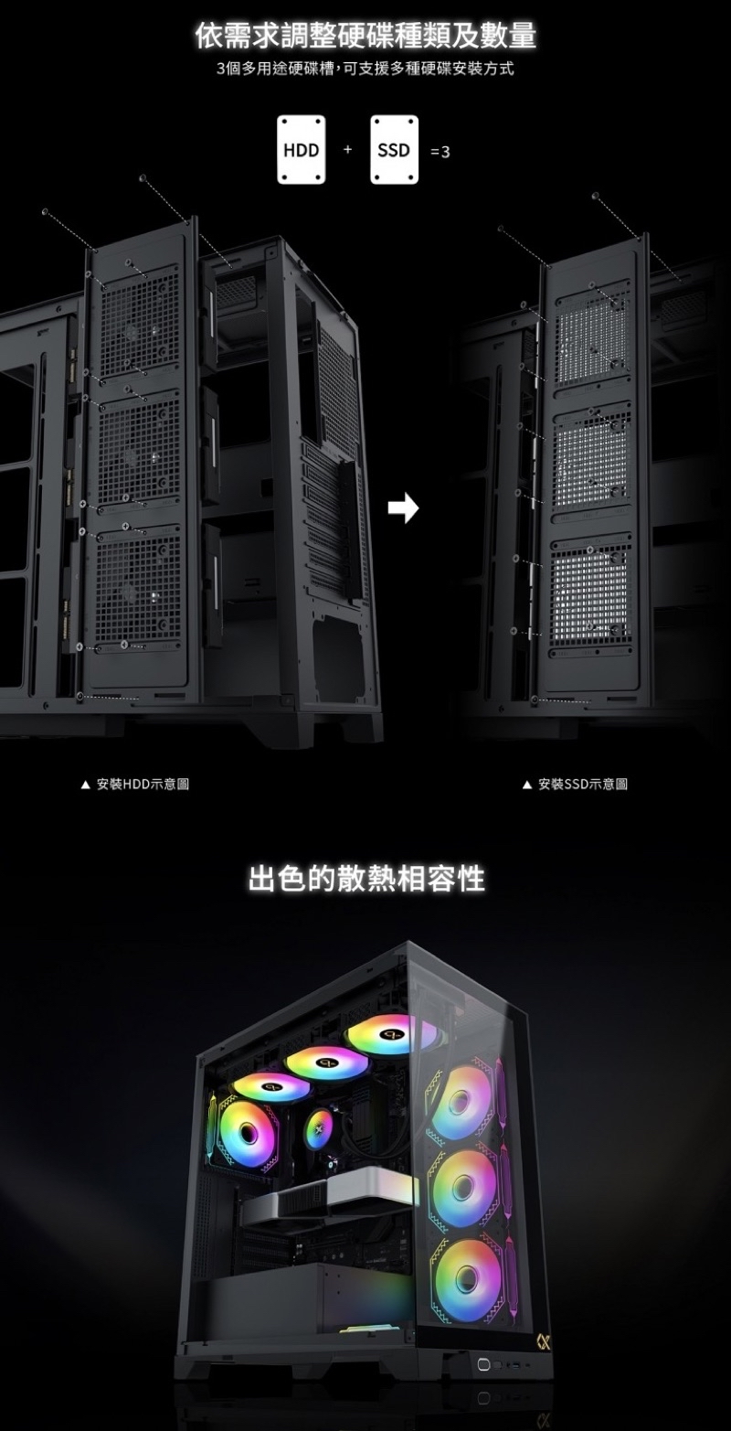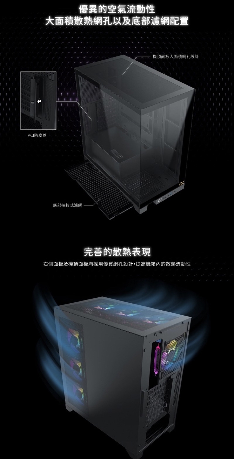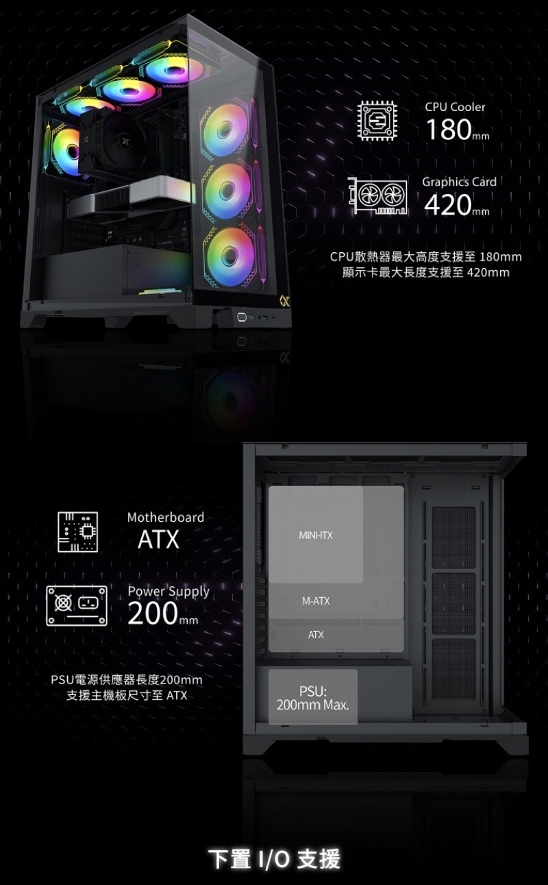 水冷散熱器支援:主機板360mm/上置360mm/後置120mm