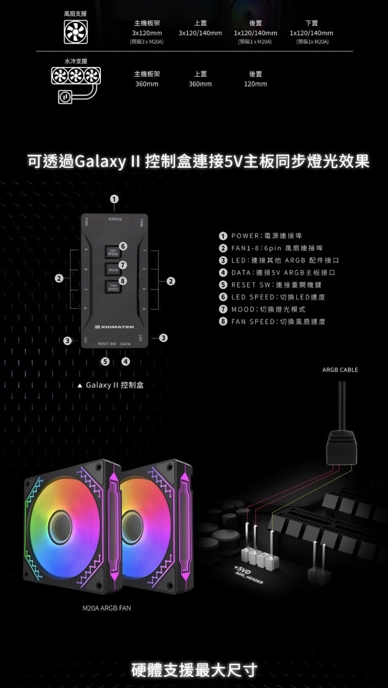 內附Galaxy II 風扇控制盒與遙控器,控制燈效