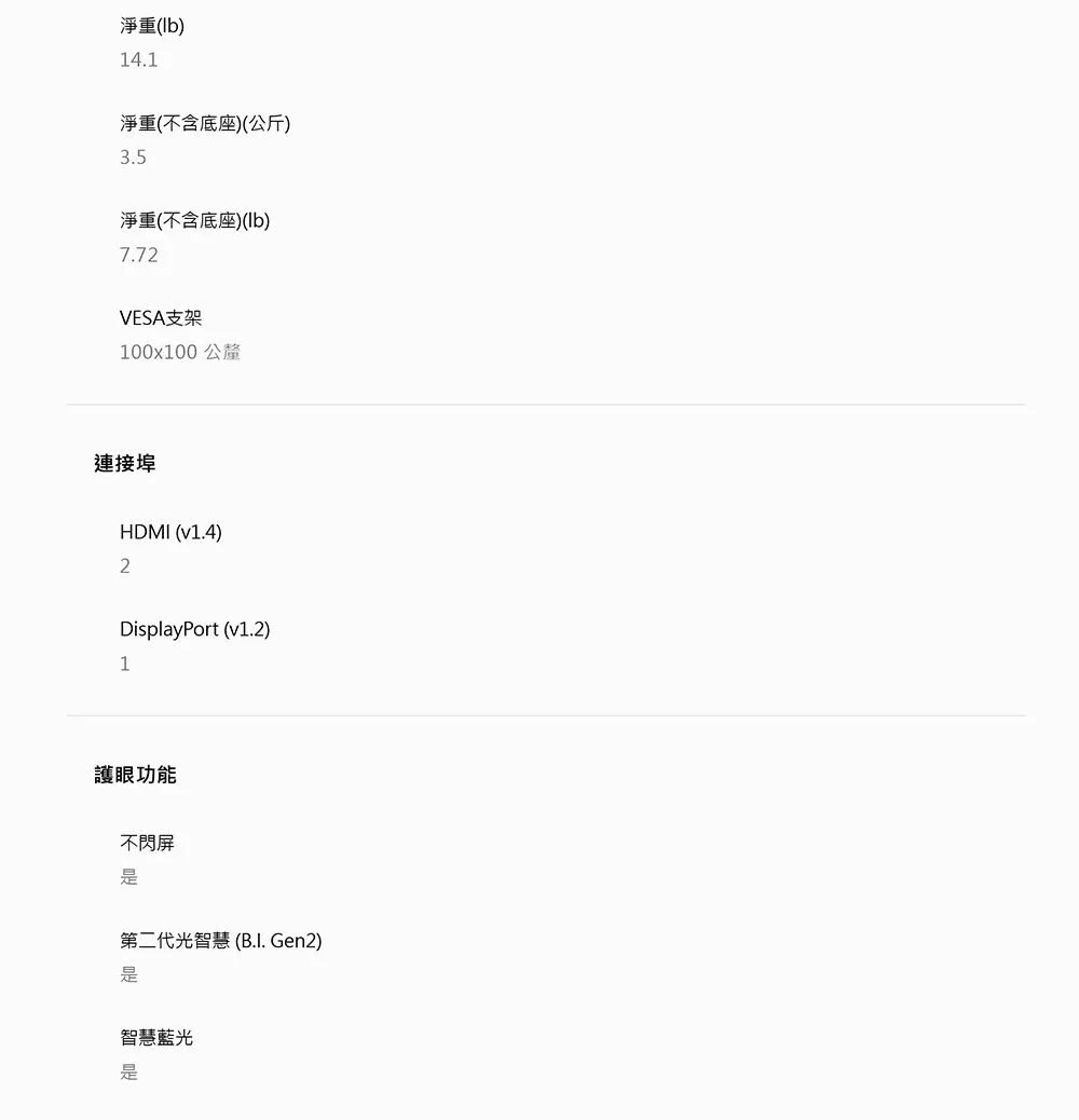 99% sRGB廣色域/eyesafe2.0認證/100hz/喇叭2W*2