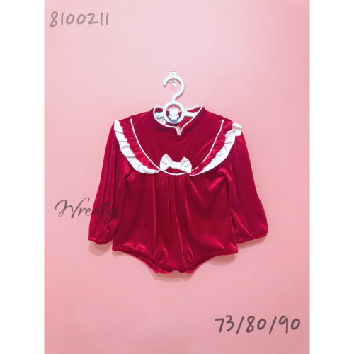 韓國絨蝴蝶結🎀喜氣x氣質x過年x新年x薄長袖 包屁衣 #8100211
