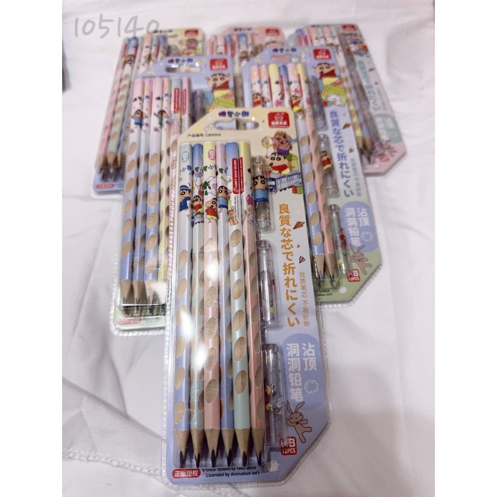 蠟筆小新 洞洞HB鉛筆12入+筆套3入 #105140