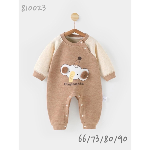 羊絨x蠶絲 輕薄x透氣x保暖x超彈 德絨立體耳大象側扣爬服 #810023