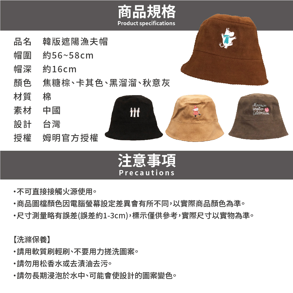 【MOOMIN】韓版漁夫帽 帽子 遮陽帽 漁夫帽 戶外帽 帽 防曬帽 姆明帽子