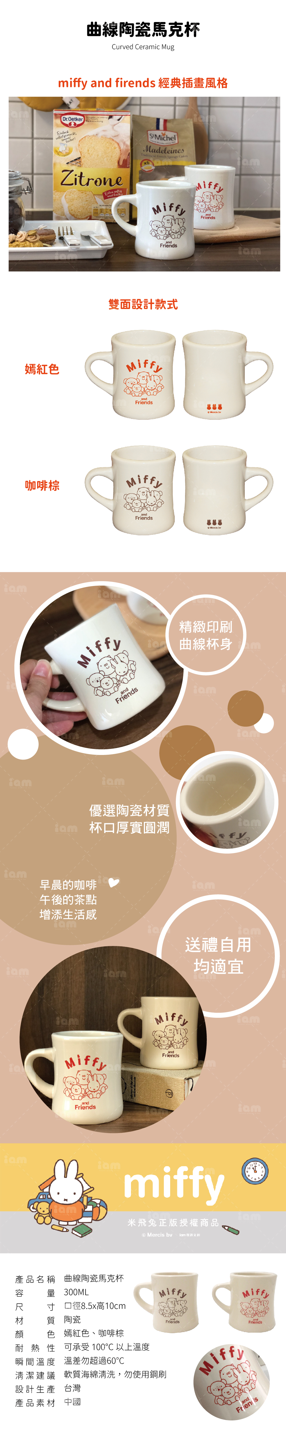 【MIFFY】曲線陶瓷杯 米飛 陶瓷馬克杯 馬克杯 咖啡杯 水杯 陶瓷杯