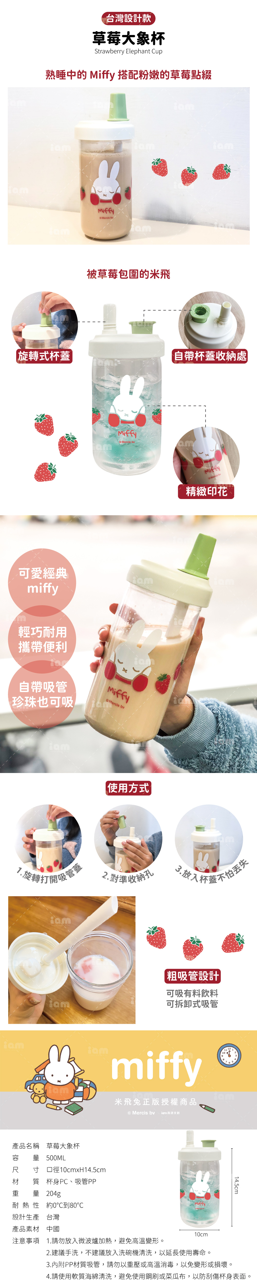 【MIFFYx台灣設計款】草莓大象杯 500ml 大象杯 隨行杯 飲料杯 冷水壺