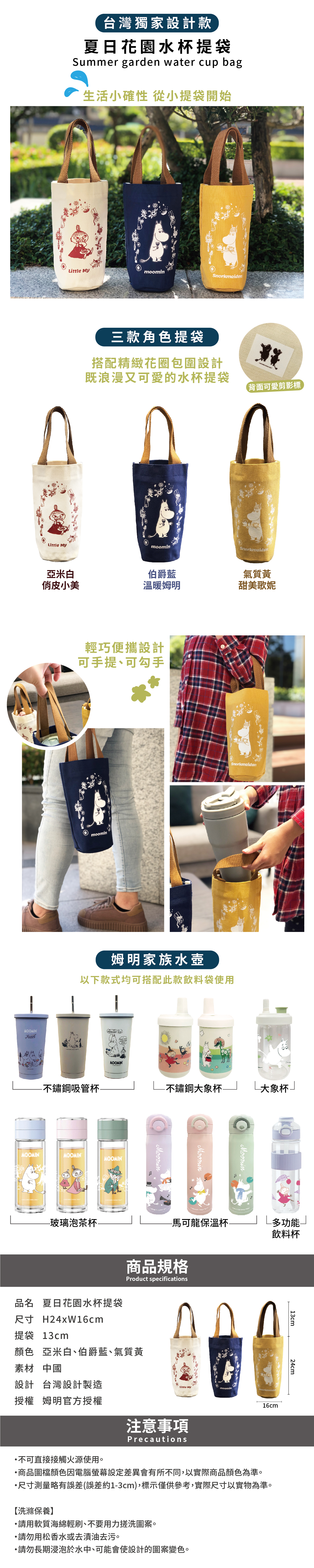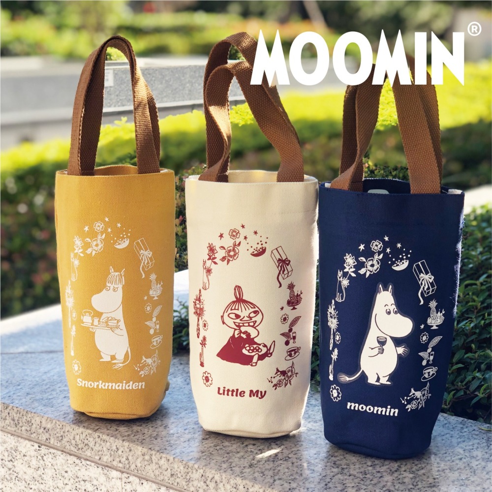 【MOOMIN】夏日花園水杯提袋 水杯袋 飲料袋 手提袋 提袋 帆布袋 購物袋 手搖飲