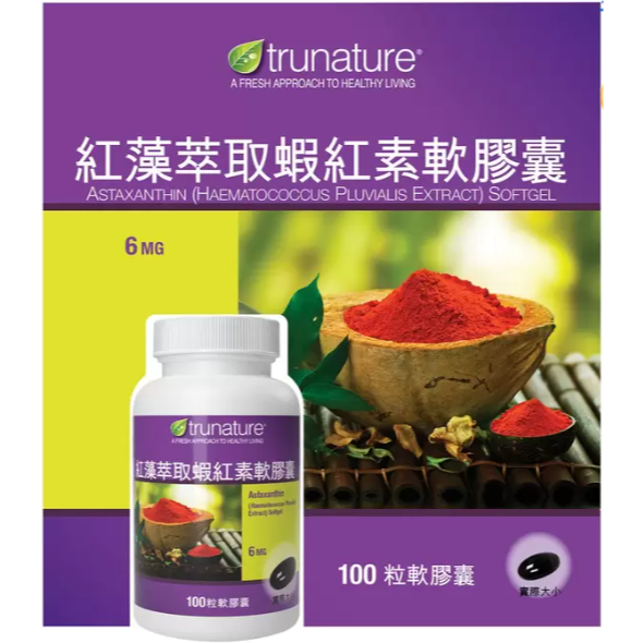 特價 100粒 trunature 紅藻萃取 蝦紅素 軟膠囊 好市多 每份添加紅藻萃取物72毫克 每份添加蝦紅素油6mg