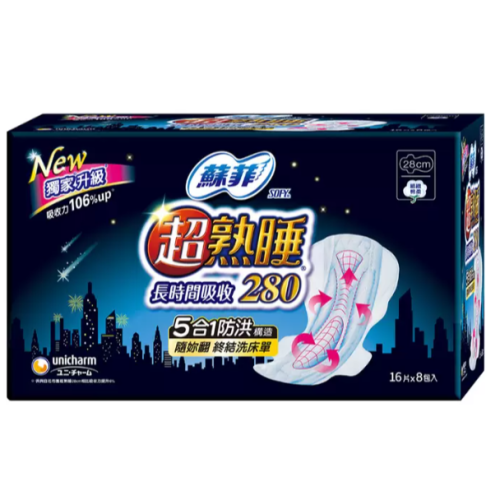 | 品名 | 蘇菲 超熟睡長時間吸收夜用衛生棉 28公分 16片 X 8入 |