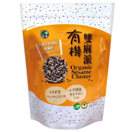 | 成分 | 有機白芝麻(台灣、玻利維亞)、有機黑芝麻(台灣、玻利維亞)、有機砂糖(巴西、巴拉圭)、有機黑糖(祕魯)、 有機糯米粉(台灣)、鹽 |