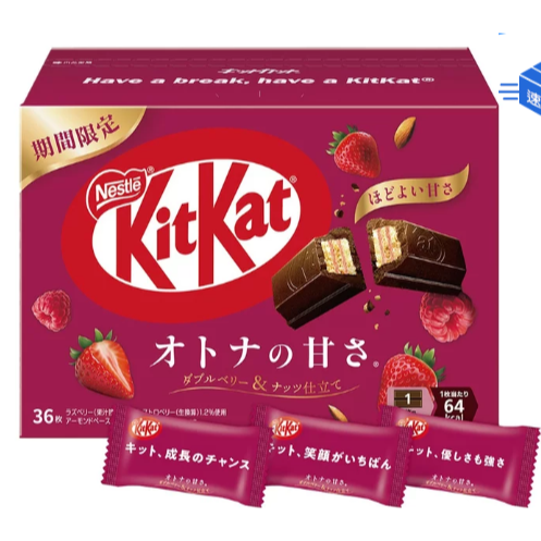 36包 雀巢 奇巧雙層莓果可可威化餅 11.3公克X36包 日本原裝進口 KitKat 草莓與覆盆莓內餡 堅果碎 餅乾