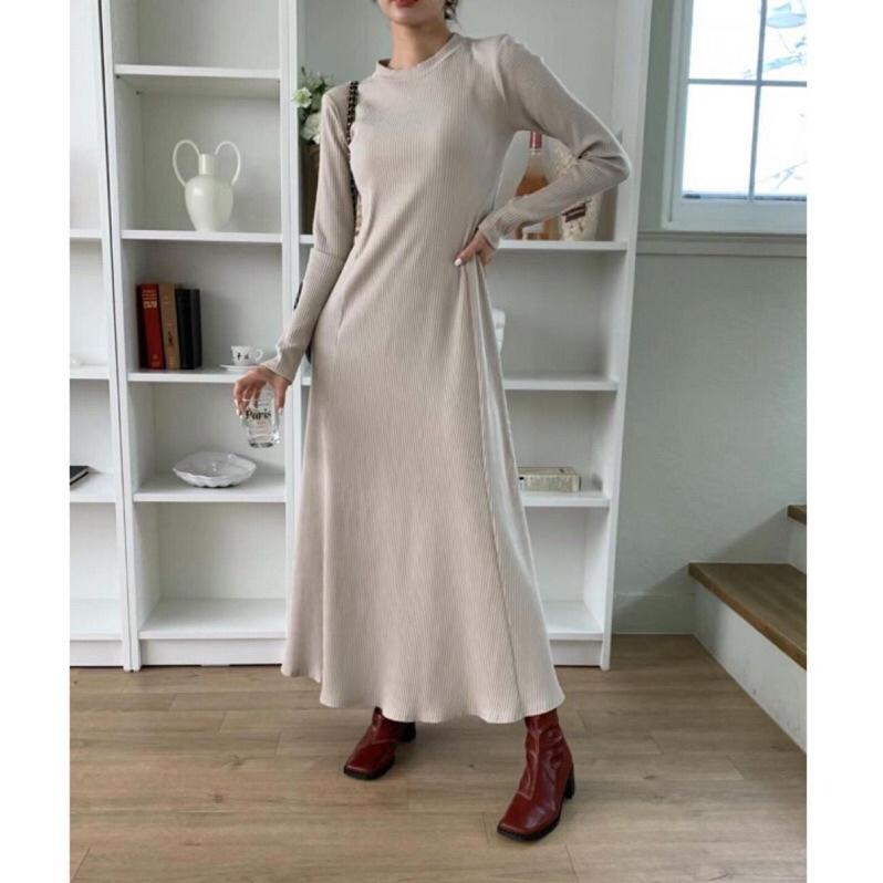 ▶ 產品:長袖修身螺紋超長連衣裙