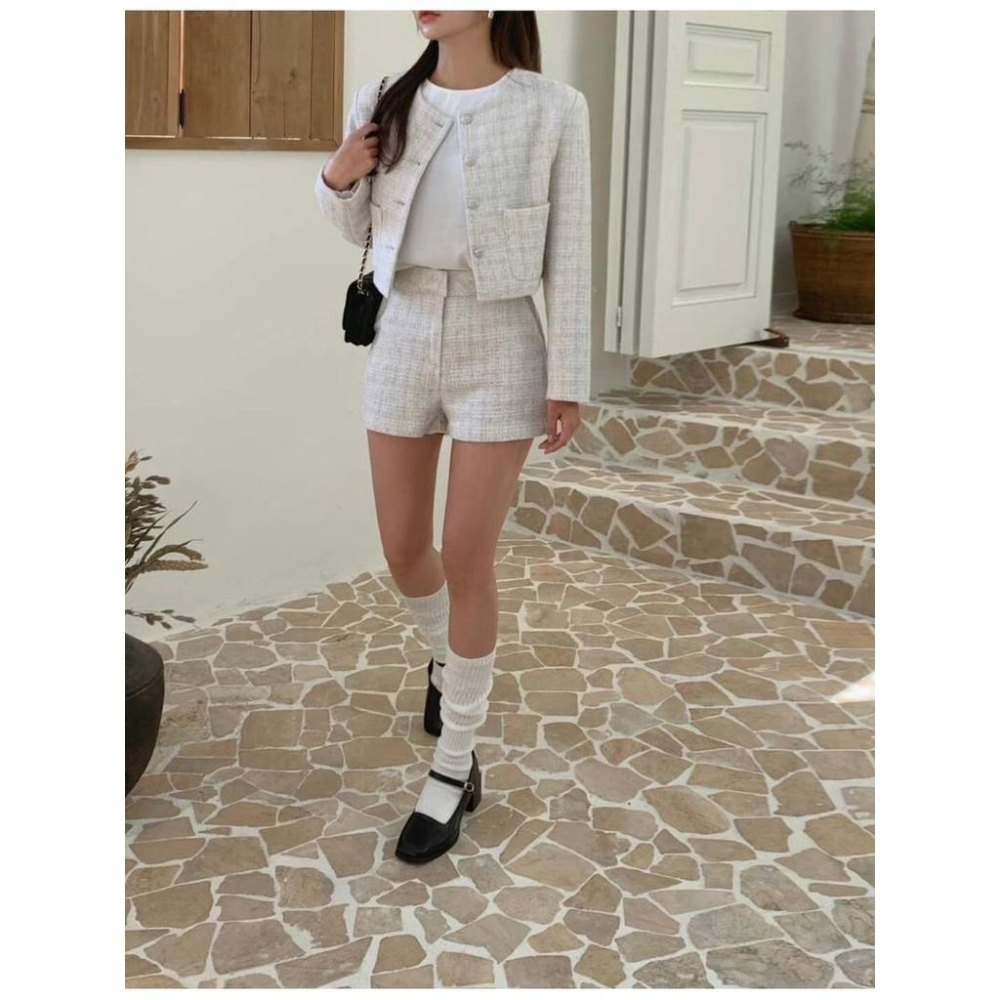 ▶ 預購為5~10天內出貨 氣質小香風短褲 顯瘦又大氣 正韓高品質 我要穿這套跟閨密約會♥