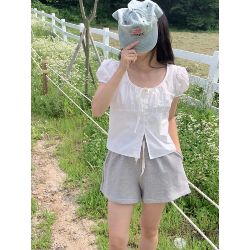 ▶ 產品:抽褶純棉短袖泡泡袖蕾絲上衣
