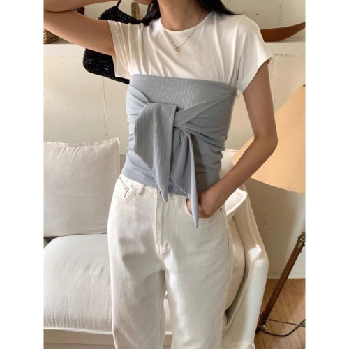 ▶ 產品:緞帶平口無袖背心 (不含圖片白色內搭上衣)