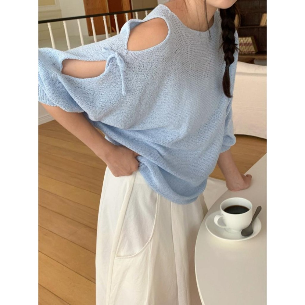 ▶ 產品:雙肩挖洞絲帶針織上衣
