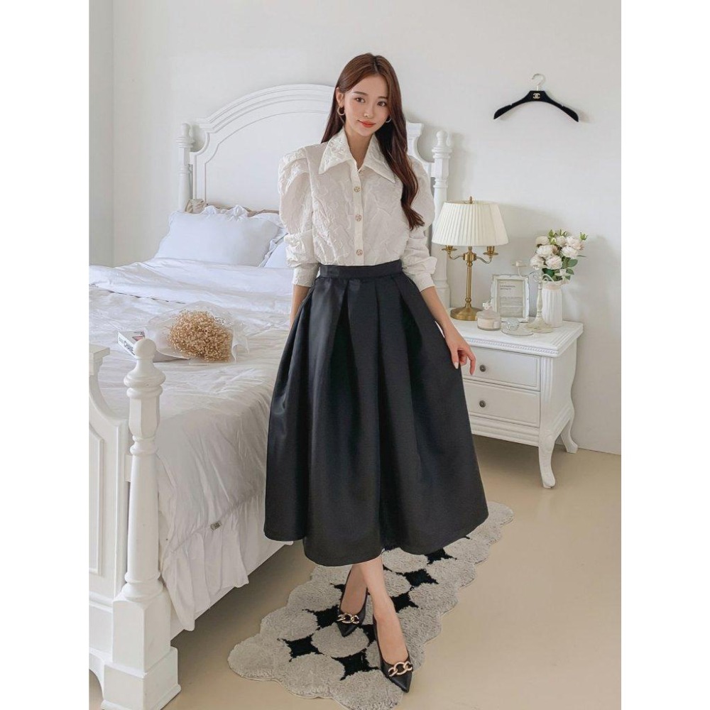 ▶ 尺寸: 【S】腰圍-約33.5cm 臀圍-約57cm 裙長-約76.5cm 下擺-約134cm 【M】腰圍-約35cm 臀圍-約59cm 裙長-約76.5cm 下擺-約136cm