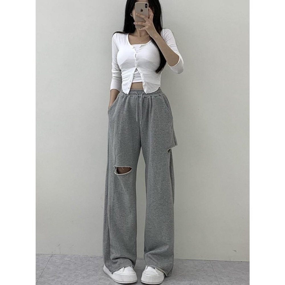 ▶ 產品:純棉破洞設計運動長褲